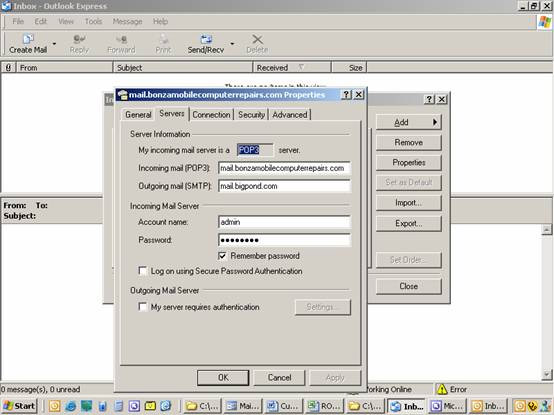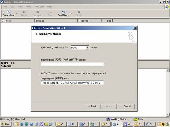 CONFIGURING OUTLOOK EXPRESS TO SEND AND RECEIVE EMAIL